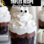 This is the fun part! Place two monster eye sprinkles on the top dollop of whipped cream to transform your mini trifles into adorable little ghosts. It instantly takes the dessert from tasty to festive and will get lots of smiles at your Halloween spread.