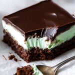 - Frost Brownies: Spread the mint frosting evenly over the cooled brownies on the baking sheet. Refrigerate for at least 1 hour to set the frosting.