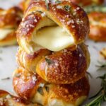 These Mozzarella Stuffed Rosemary and Parmesan Soft Pretzels are a delightful twist on the classic soft pretzel, filled with gooey mozzarella and parmesan cheese, and flavored with fresh rosemary and garlic. Perfectly soft on the inside with a golden crust, they make an irresistible snack or appetizer.