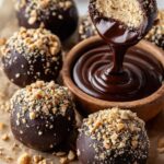 These No Bake Peanut Butter Cheesecake Balls are rich, creamy, and perfectly coated in silky chocolate. Made with cream cheese, peanut butter, and a hint of vanilla, they feature a crunchy graham cracker crust and a luscious chocolate coating topped with chopped peanuts and graham cracker crumbs. Perfect as a quick and easy dessert or snack, these bite-sized treats require no baking and come together swiftly in the freezer.