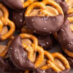 - Dip Sandwiches in Chocolate: Dip each peanut butter pretzel sandwich halfway into the melted chocolate, then place them back on the parchment paper. Optionally, sprinkle with sea salt while the chocolate is still wet.