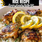 A flavorful one-pot Greek chicken and lemon rice recipe featuring marinated chicken thighs cooked with aromatic herbs, garlic, and lemon zest, combined with tender long grain rice simmered in chicken broth for a comforting and easy meal.