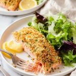 A delicious Parmesan Crusted Salmon recipe featuring a wild salmon fillet topped with a flavorful crust of breadcrumbs, Parmesan cheese, garlic, and herbs, baked to golden perfection for a quick and elegant main dish.