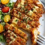 I always top the Pretzel Crusted Chicken with cheddar sauce with freshly minced parsley — it adds just the right amount of freshness and color that makes your plate pop. Sometimes, I toss on a few extra cracked black pepper flakes for a subtle spice boost. Lemon zest occasionally makes a surprise appearance if I want a bit of brightness cutting through the richness.