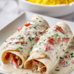 - Build the casserole: Arrange the rolled enchiladas side by side in a 9×13 inch casserole dish, fitting them snugly. Pour the warm queso sauce evenly over the top of all the rolled enchiladas.