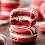 Delicious and elegant Red Velvet Macarons made with almond flour, Dutch-process cocoa powder, and a creamy cream cheese frosting filling. These vibrant red macarons feature a delicate meringue shell with a smooth, rich filling perfect for special occasions or gifting.
