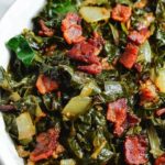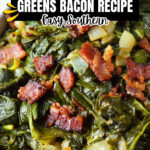 A flavorful and hearty Collard Greens recipe featuring smoky bacon, aromatic onions, garlic, and a blend of seasonings simmered until tender in chicken broth, perfect as a comforting side dish.