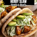 Definitely! Swap the chicken for roasted chickpeas or tofu, and use a plant-based yogurt for the slaw. You’ll still get all the bright, fresh flavors without animal products.