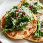 - Add Toppings: Remove the tortillas from heat and top each with chopped fresh romaine lettuce, a drizzle of Caesar dressing, grated parmesan cheese, and crispy bacon bits. You can toss the lettuce with the Caesar dressing beforehand if preferred.