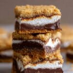 Delicious S’mores cookie bars featuring a graham cracker-infused cookie dough layered with Hershey chocolate bars and marshmallow fluff, baked to golden perfection for a gooey, unforgettable treat.