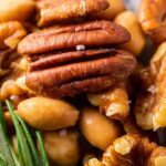 9. Serve Mixed Spiced Nuts: Transfer the roasted nuts to a serving bowl, garnish with a sprig of fresh rosemary, and enjoy your flavorful snack.
