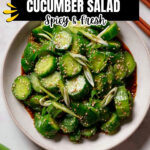 - Chopsticks Are Key: I once skipped the chopsticks step and ended up cutting through the cucumber — not as elegant, so don’t skip this trick.