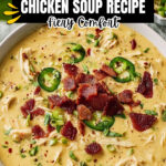 A creamy and spicy jalapeño popper chicken soup blending tender chicken, creamy cheeses, and a kick of jalapeño heat for a comforting and flavorful meal.