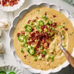 A creamy and spicy jalapeño popper chicken soup blending tender chicken, creamy cheeses, and a kick of jalapeño heat for a comforting and flavorful meal.