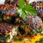 Delicious spinach garlic meatballs stuffed with melted mozzarella cheese, seasoned with Italian herbs and Parmesan, perfect as a flavorful main course or appetizer that everyone will love.