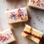 Delight in these homemade Poptart Cookie Bars featuring a tender sugar cookie dough layered with strawberry preserves and topped with a sweet vanilla glaze and rainbow sprinkles. Perfect for a nostalgic treat or fun dessert!