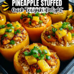 - Serve: Let the stuffed peppers cool slightly before serving. Garnish with extra pineapple chunks or chopped green onions if desired for added freshness and presentation.
