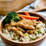 Carefully remove the foil (watch out for steam!) and shred the chicken right in the casserole using two forks—it’s so easy once it’s cooked. Add your cooked rice in at this point, pour in most of the remaining sauce, reserving a little for drizzling when serving, and gently toss everything together so that each bite is packed with that incredible teriyaki goodness.