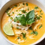 This Easy Thai Chicken Curry Soup is a flavorful, comforting dish featuring a creamy coconut milk base, fragrant Thai red curry paste, tender shredded chicken, and rice noodles. Perfect for a quick weeknight meal, it balances spice, tang, and herbaceous freshness for a deliciously warming bowl.