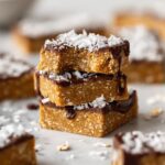 These Toasted Coconut Date Bars are a delicious vegan treat combining naturally sweet medjool dates, crunchy toasted coconut flakes, creamy almond butter, and rich dark chocolate. Perfect as a healthy snack or dessert, these bars are easy to make and require no baking.