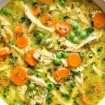 This comforting Anti Inflammatory Turmeric Chicken Soup combines nutrient-rich ingredients like turmeric, garlic, and fresh vegetables in a creamy coconut milk broth. It’s a flavorful, healing soup perfect for easing inflammation, featuring tender chicken and vibrant peas, seasoned with poultry spices and fresh parsley.