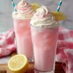 If you happen to have leftovers (and I doubt you will!), store your whipped pink lemonade in an airtight container in the fridge. Keep in mind the whipped cream topping may lose its fluffy texture over time, so give it a gentle stir or remix before serving to bring back some of the creaminess.
