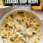 A comforting and hearty White Lasagna Soup made with tender chicken, sun-dried tomatoes, fresh spinach, and a creamy broth, garnished with ricotta, Parmesan, and mozzarella cheeses. This soup combines the flavors of classic lasagna in an easy-to-make, cozy bowl.