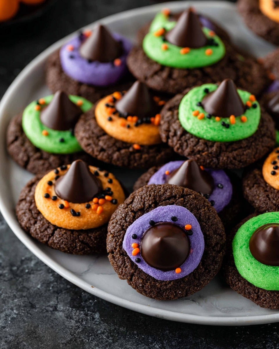 These Witch Hat Cookies pair perfectly with a warm cup of spiced cider or hot chocolate. For Halloween parties, I recommend serving alongside fudge brownies or pumpkin muffins to keep the dessert table on theme and packed with variety.
